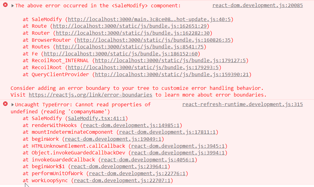 에러가 났던 이유는 당연히 render를 하게되면 props값이 결정되야 하는데, 제가 작성한 코드를 보면 useEffect보다 render가 먼저 처리되어 saleInfo에서 undefined가 발생하는 것이 맞았습니다.