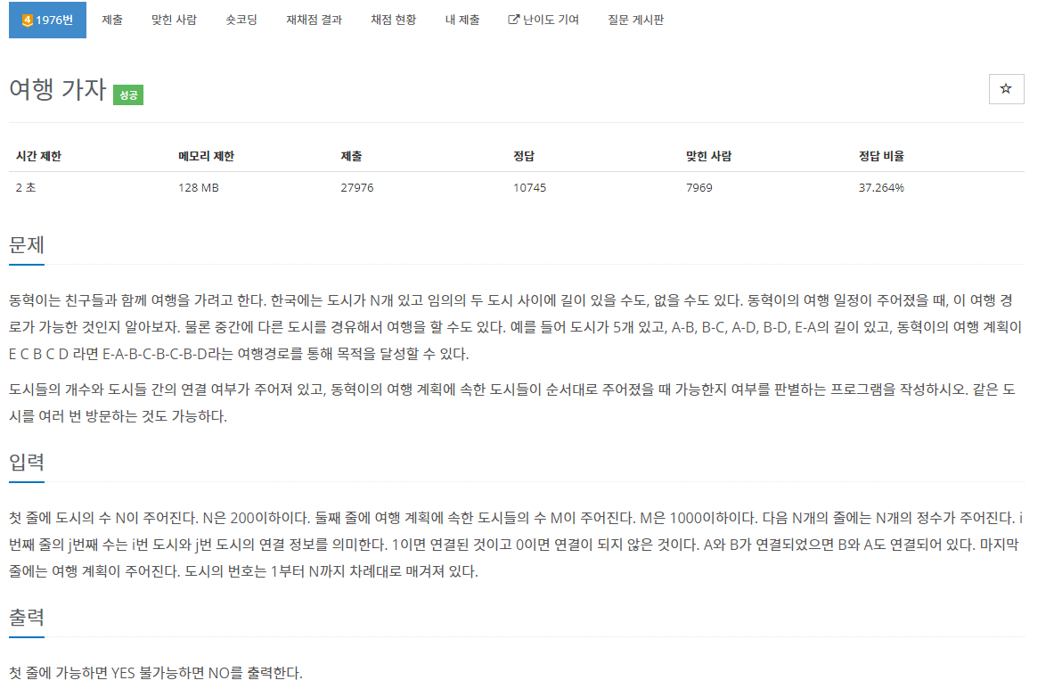 문제에서 여행 계획에 속한 도시 M이 주어지고 총 N 개의 여행 계획이 주어진다. 이때 여행계획을 달성할 수 있는지 없는지 확인하는 문제이다.