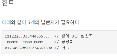 힌트를 보면 웅덩이는 1에서 시작하는데 널빤지를 0에서 부터 붙이기 시작하여 사실상 힌트 오류라고 할수 있다.